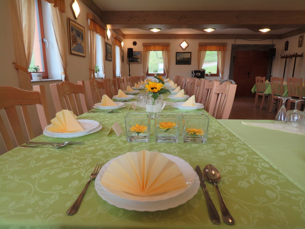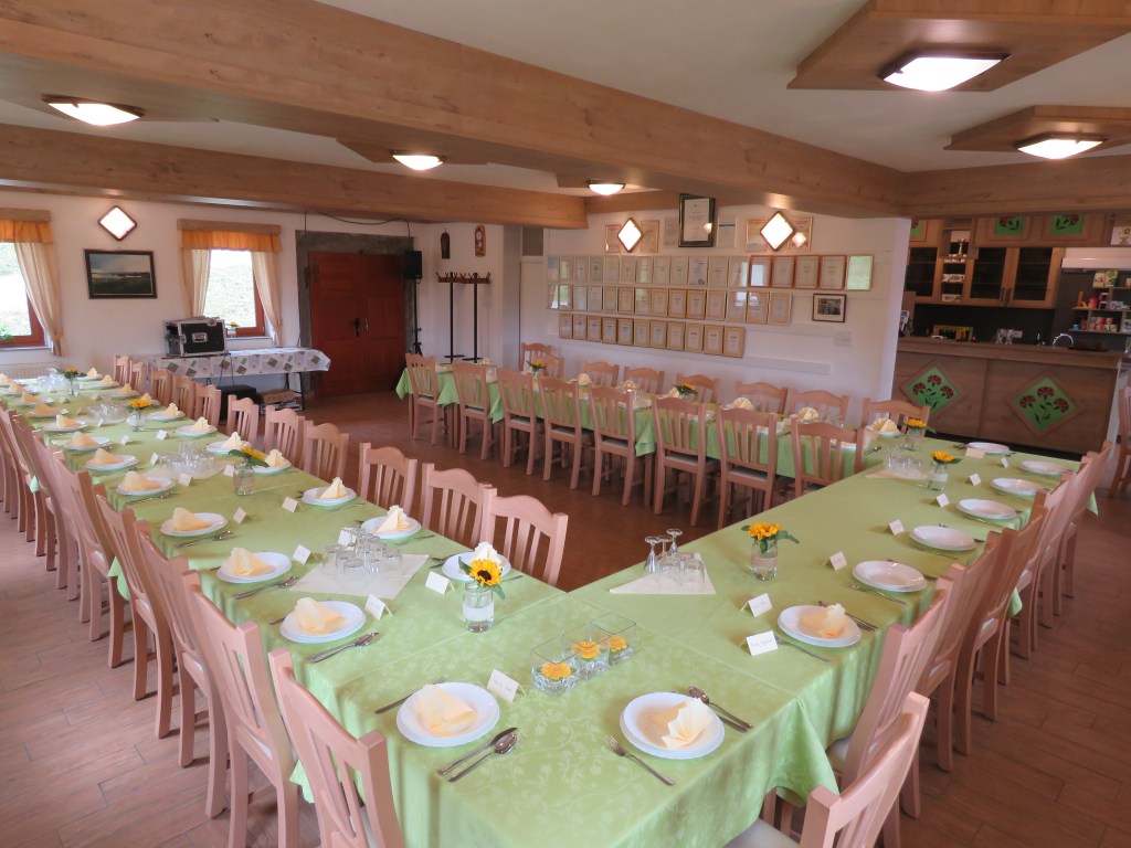 Prostor za pogostitve V prostoru za pogostitev lahko sprejmemo do 60 oseb. Večje skupine se lahko odločijo za piknik pod kozolcem.